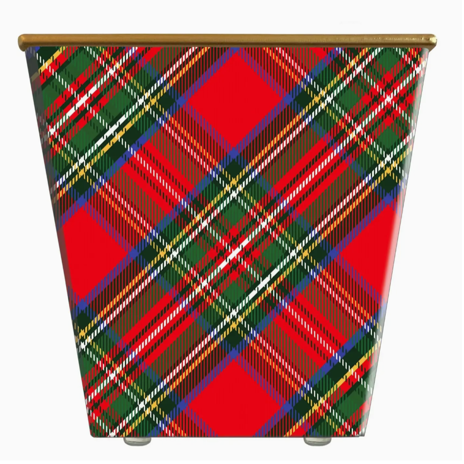 A perfect holiday gift, this Mini Tartan Plaid Cachepot Candle is hand-poured, individually decorated and unscented. Each candle is wicked in cotton and contains the perfect blend of paraffin and vegetable waxes, providing approximately 40 hours of burn time. Handcrafted of composite material, wrapped in decorative paper, and finished with a burnished gold rim. Four protective pads support its base. Once the candle is gone, reuse the beautiful container to hold plants or flowers, or as a decorative object.