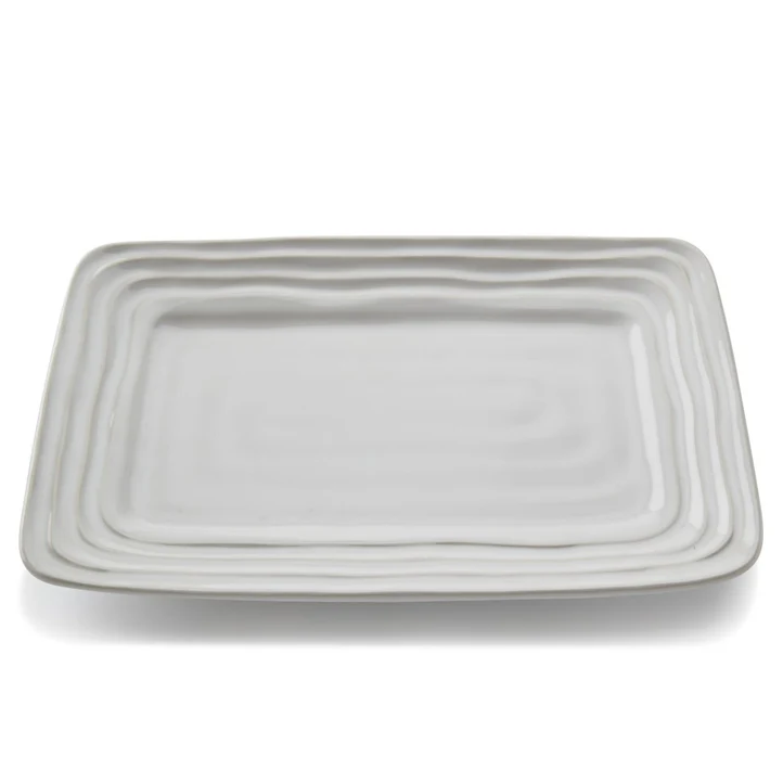 The soft organic silhouette and shape of this stoneware Terra Rectangle Tray will complement any decor and is a versatile piece. Handcrafted in Portugal. Freezer, oven, microwave and dishwasher safe.